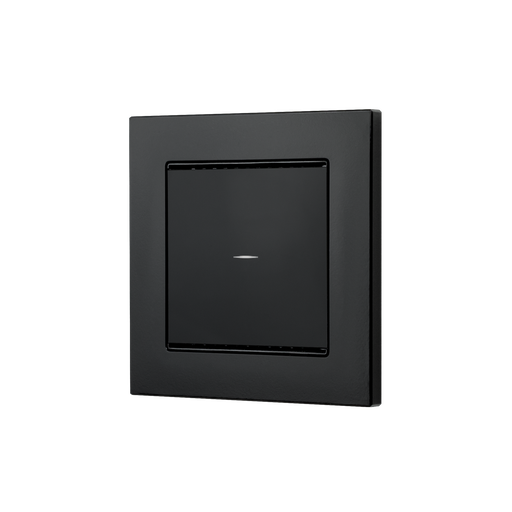 Tryckknapp i glas med pekyta. Cala KNX MT-tryckknappen har en beröringskänslig knapp, med vilken en funktion i KNX-byggnadsbussystemet kan anropas, som t.ex. växla ljus och apparater, skicka värden, scenarier. En vit lysdiod är integrerad i pekknappen, vars beteende kan justeras. En temperatursensor är integrerad i Cala KNX MT. En extern temperaturavläsning kan tas emot via bussen och bearbetas med egna data för att skapa en total temperatur (blandvärde). Kommunikationsobjekt kan anslutas med OCH- och ELLER-logiska grindar. Apparaten kompletteras med en ram av brytarserien som används i byggnaden och passar därmed sömlöst in i inredningen. Modeller: N° 70860 Cala M1-T enkel tryckknapp, vit N° 70862 Cala M1-T enkel tryckknapp, svart Levereras utan ram