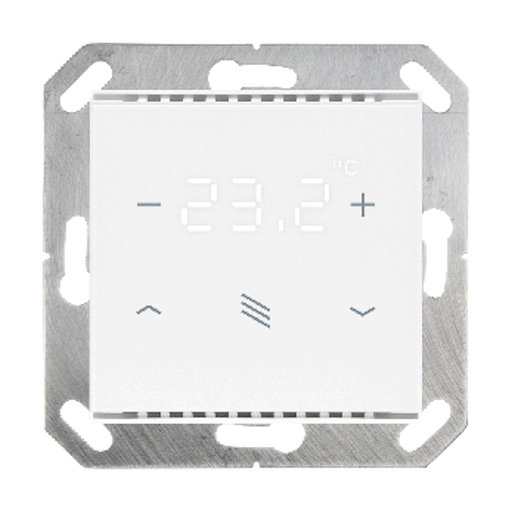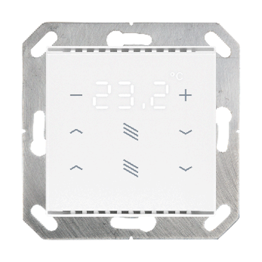 Kombinerad inomhusgivare för KNX med givare för temperatur och luftfuktighet. Med styrenhet för värme och ventilation. Sensor KNX TH-UP gl mäter temperatur och luftfuktighet och beräknar daggpunkten. Givaren kan ta emot externa mätvärden via bussen och bearbeta dem med egna data till övergripande värden (blandade värden, t.ex. rumsmedelvärde). KNX TH-UP gl ger kopplingsutgångar med justerbara tröskelvärden. Omkopplingsutgångarna och ytterligare kommunikationsobjekt kan länkas samman med OCH- och ELLER-logiska grindar. Dessutom kan en integrerad manövervariabel komparator jämföra och mata ut värden som tas emot via kommunikationsobjekt. Integrerade PI-regulatorer möjliggör styrning av en ventilation (beroende på luftfuktighet) och ett värme-/kylsystem (beroende på temperatur). KNX TH-UP gl kan avge en varning till bussen så snart området med optimal komfort (enligt DIN 1946) lämnas. Modeller: N° 70622 KNX TH-UP gl, svart N° 70623 KNX TH-UP gl, ren vit Leverans utan ram